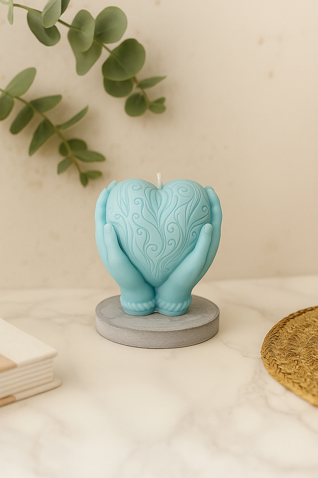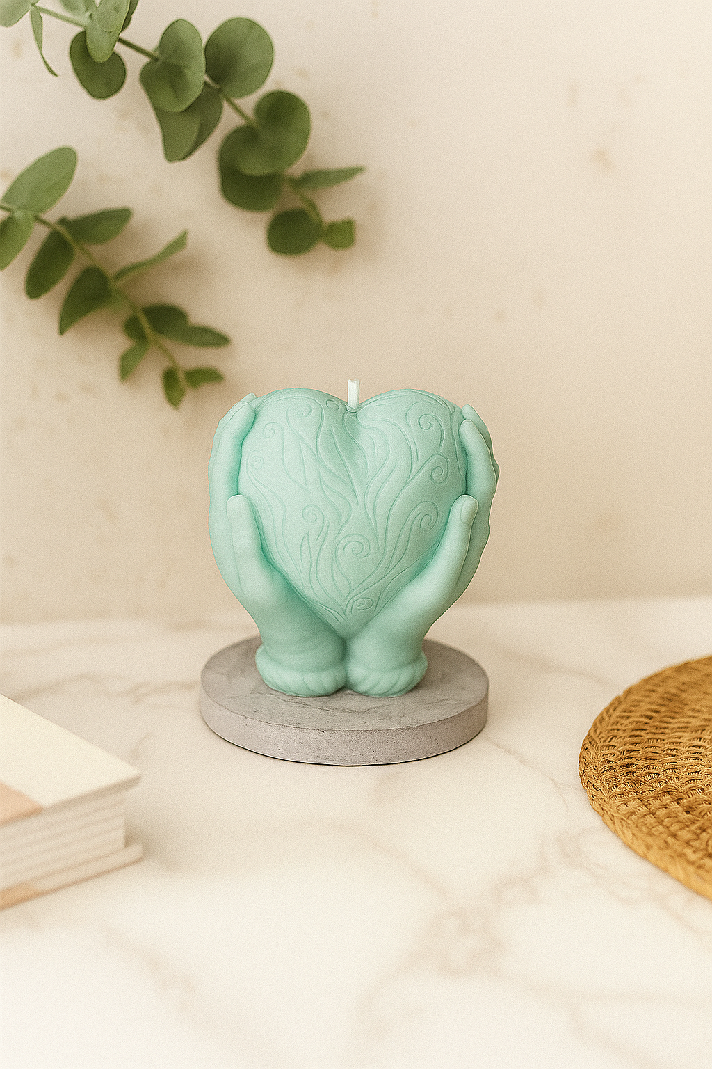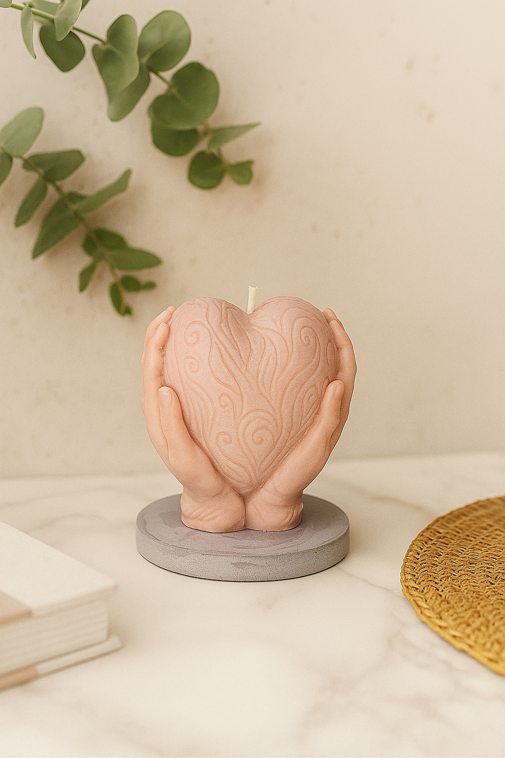 Laat je omhullen door de serene elegantie van Whispering Heart, een handgemaakte luxe kaars die het tijdloze symbool van liefde en warmte verheft tot een waar kunstobject.