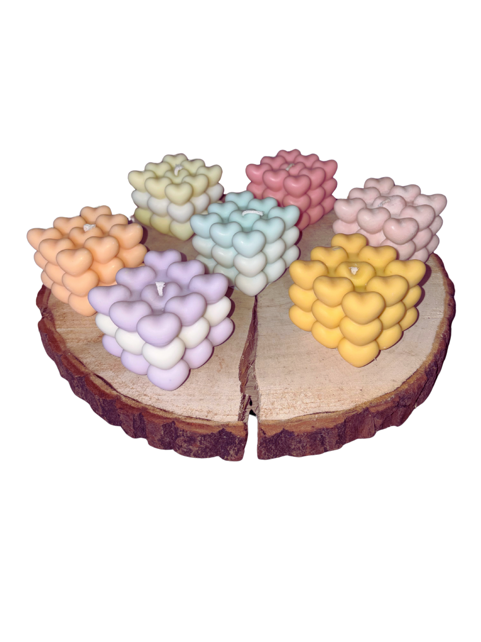 Met de hand gegoten en gemaakt van natuurlijke was is deze kubus opgebouwd uit zachte, 3D-hartjes. Elk blokje is een klein kunstwerkje dat jouw interieur een speelse en warme uitstraling geeft.