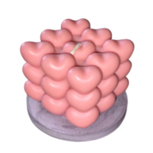 Laat liefde het licht zijn met deze unieke hartenkubus-kaars! 🧡