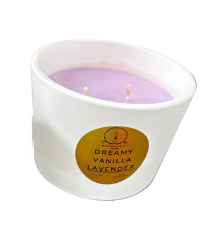 Laat je meevoeren in een zachte droomwereld met de Dreamy Vanilla Lavender geurkaars.