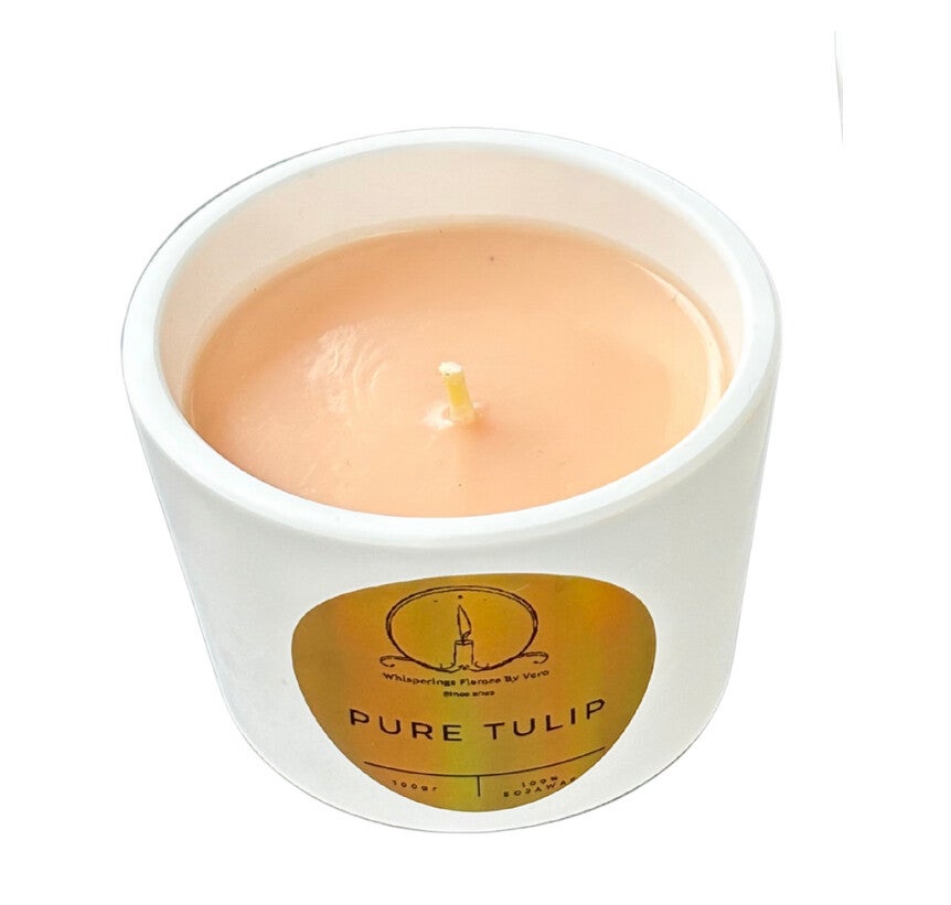 Breng de frisse elegantie van een bloeiende tulp in huis met **Pure Tulip**. Deze kaars ademt zachtheid, puurheid en een vleugje lente, waardoor elke ruimte meteen een opgefriste en vrolijke sfeer krijgt.