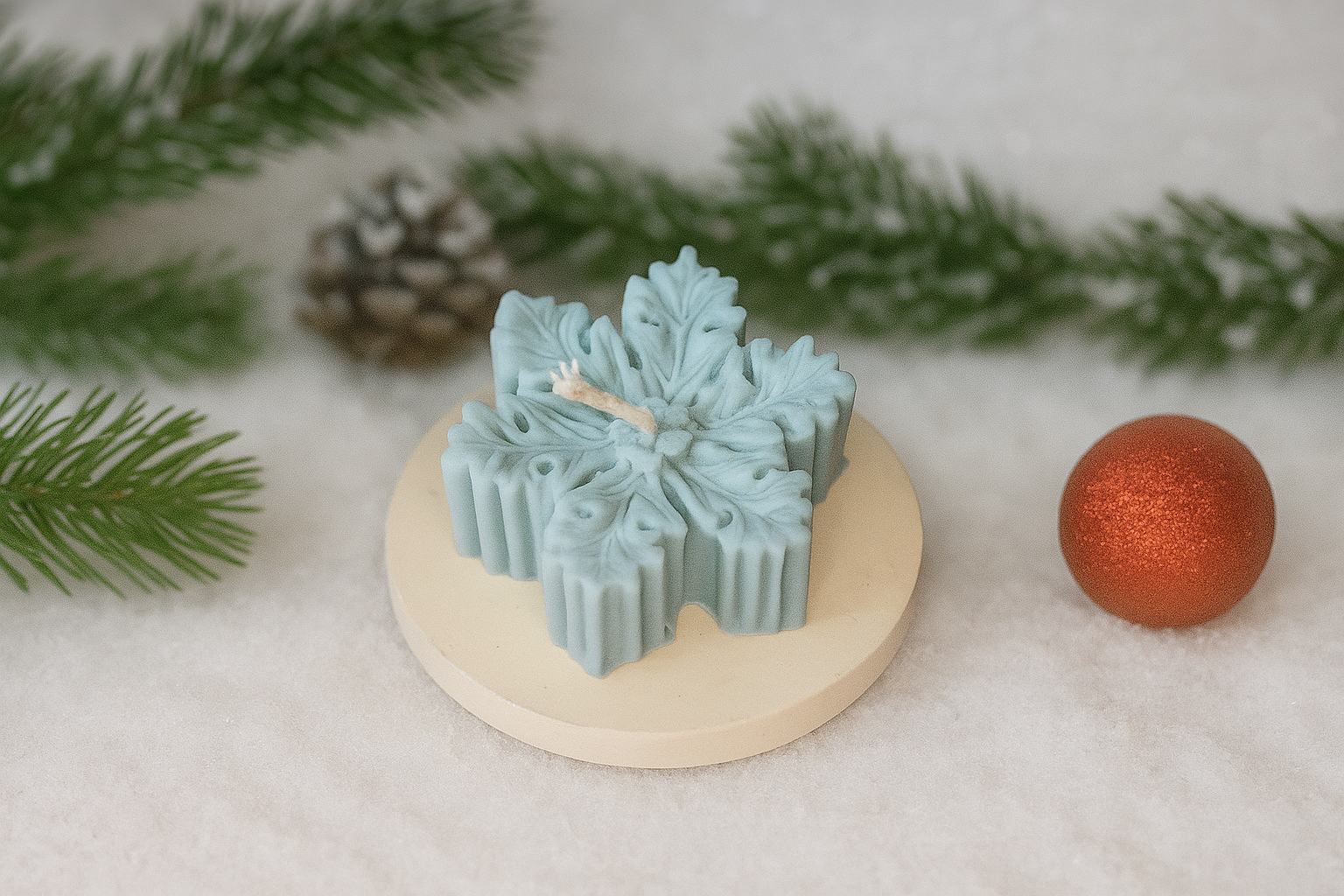Ons Sneeuwvlokje is handgegoten met natuurlijke sojawas en straalt pure zachtheid en elegantie uit. De verfijnde vorm en subtiele details maken van deze kaars een echte blikvanger in je winterinterieur.