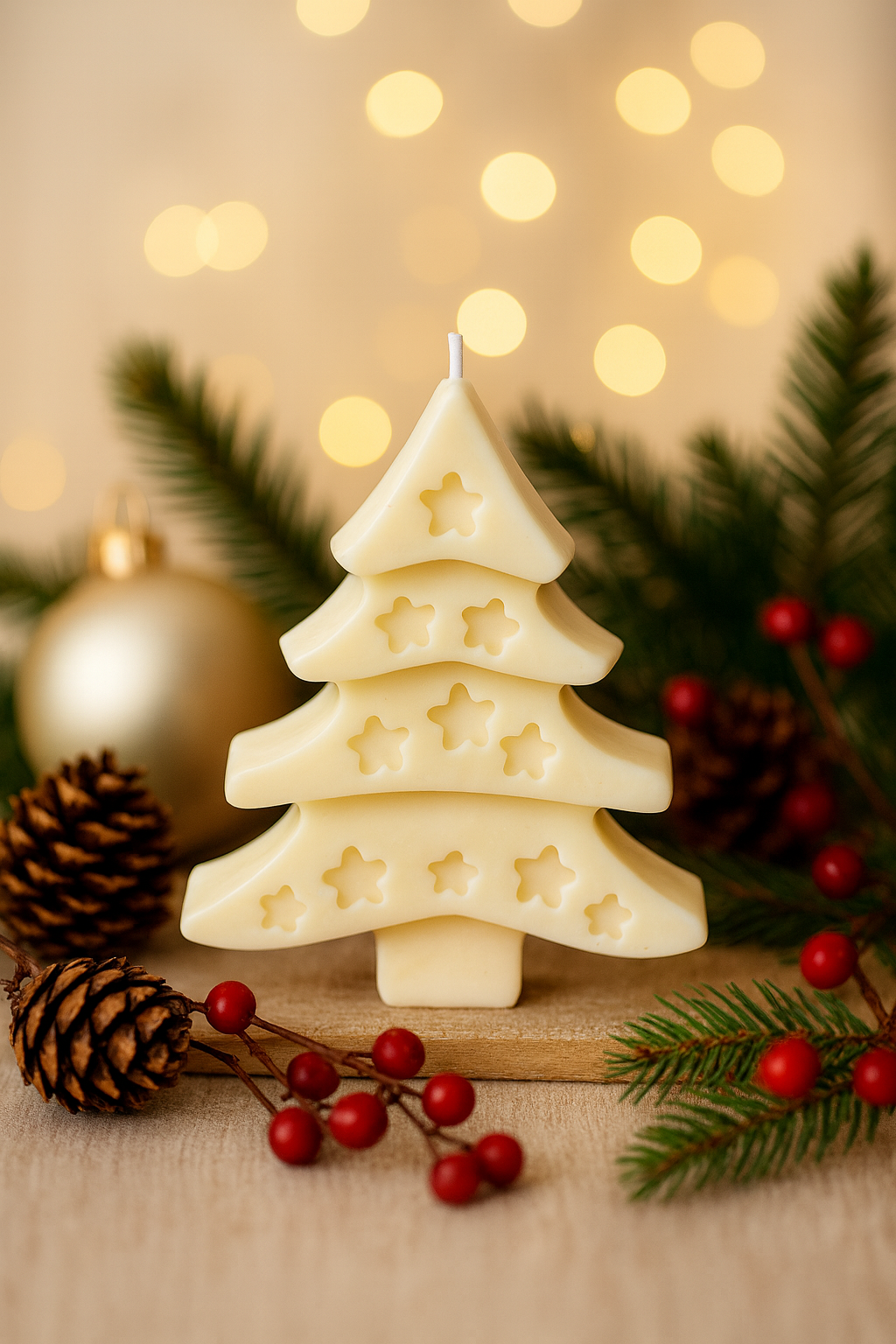 Ontdek onze betoverende Winter Star Tree – een handgemaakte kerstboomkaars die meteen warmte en gezelligheid in huis brengt.